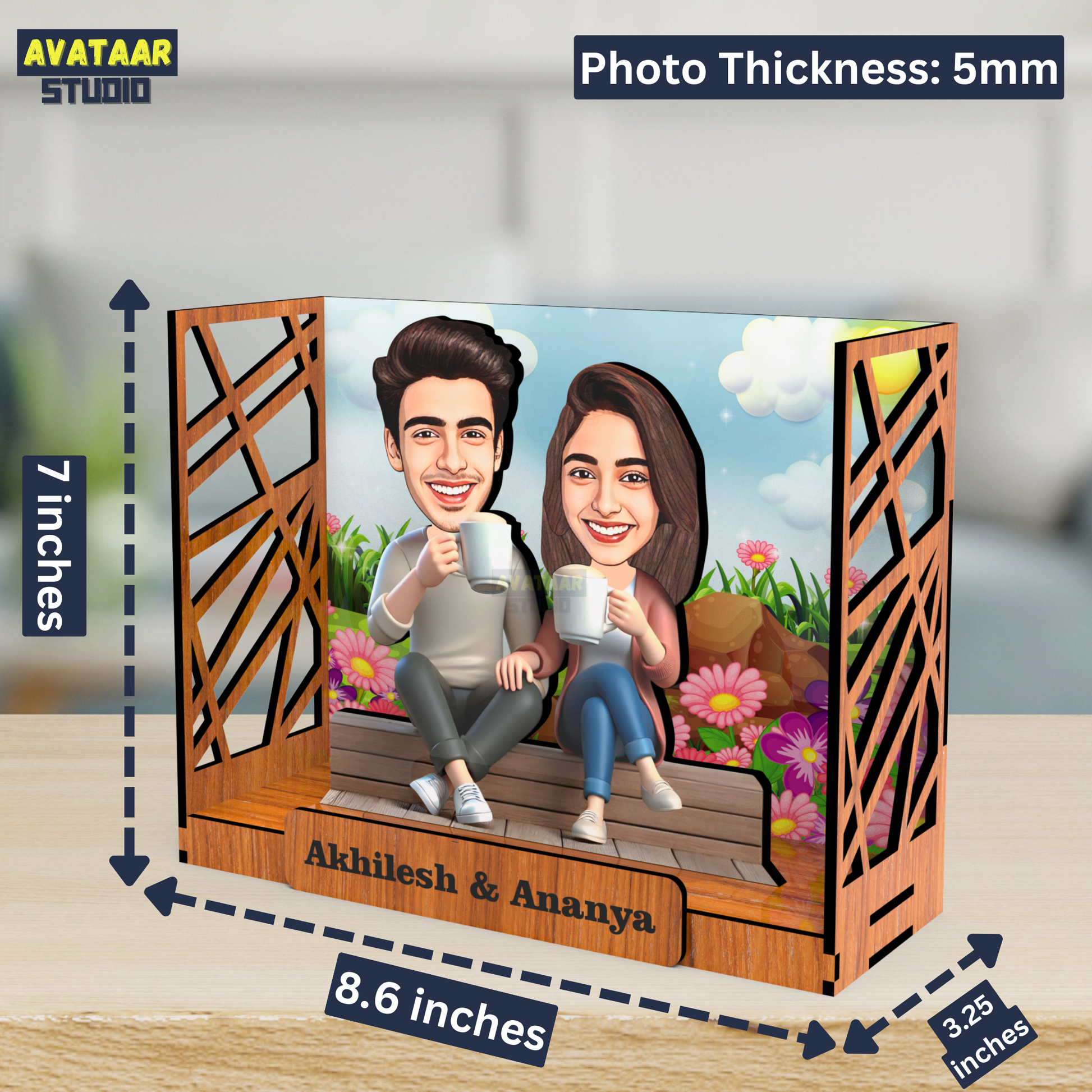 Avataar Studio Personalized Gift for Husband, Wife, Boyfriend, Girlfriend Character Caricature Photo Frame Unique Design Customized Gift for Friends & Family Return Gift (COUPLE 11 BOX)