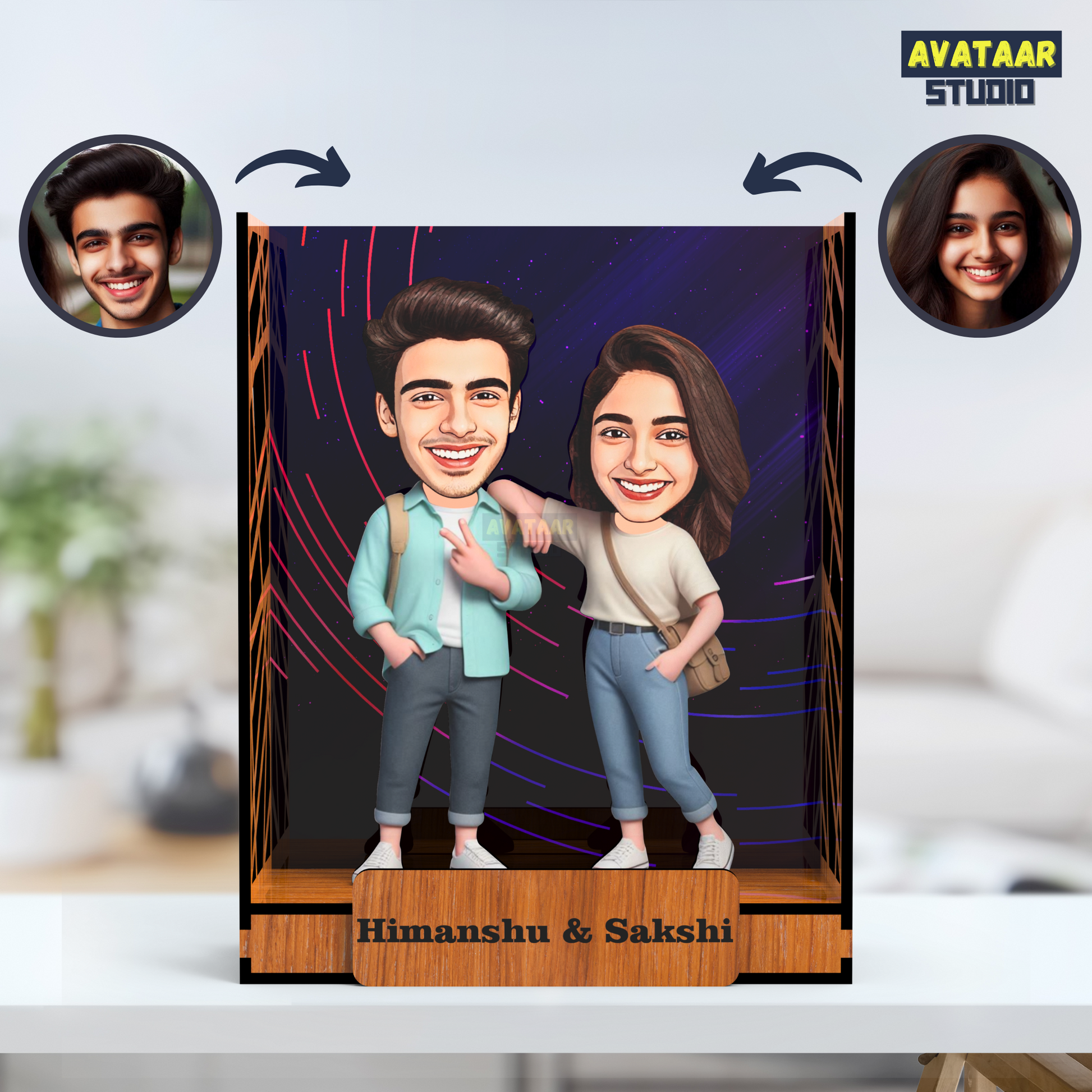 Avataar Studio Personalized Gift for Husband, Wife, Boyfriend, Girlfriend Character Caricature Photo Frame Unique Design Customized Gift for Friends & Family Return Gift (BRO SIS 2 BOX)