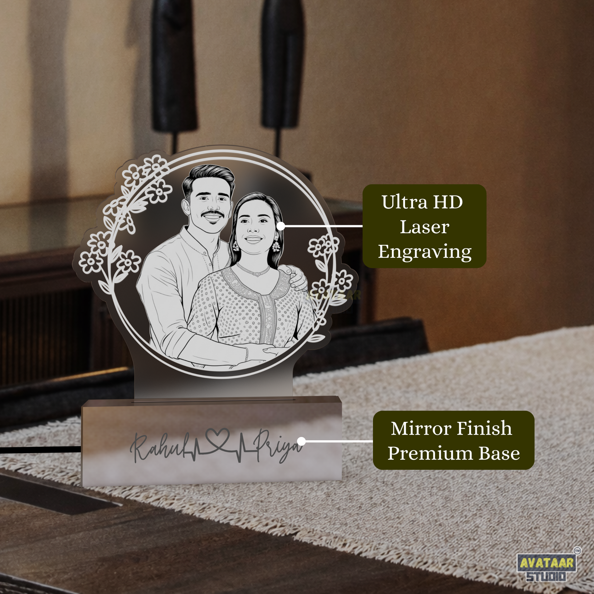 Personalized Acrylic LED Photo Lamp for Couples – Custom Engraved Etched Photo with Premium Base, Backlit Romantic Night Light – Anniversary, Wedding & Valentine Gift (Design 2)